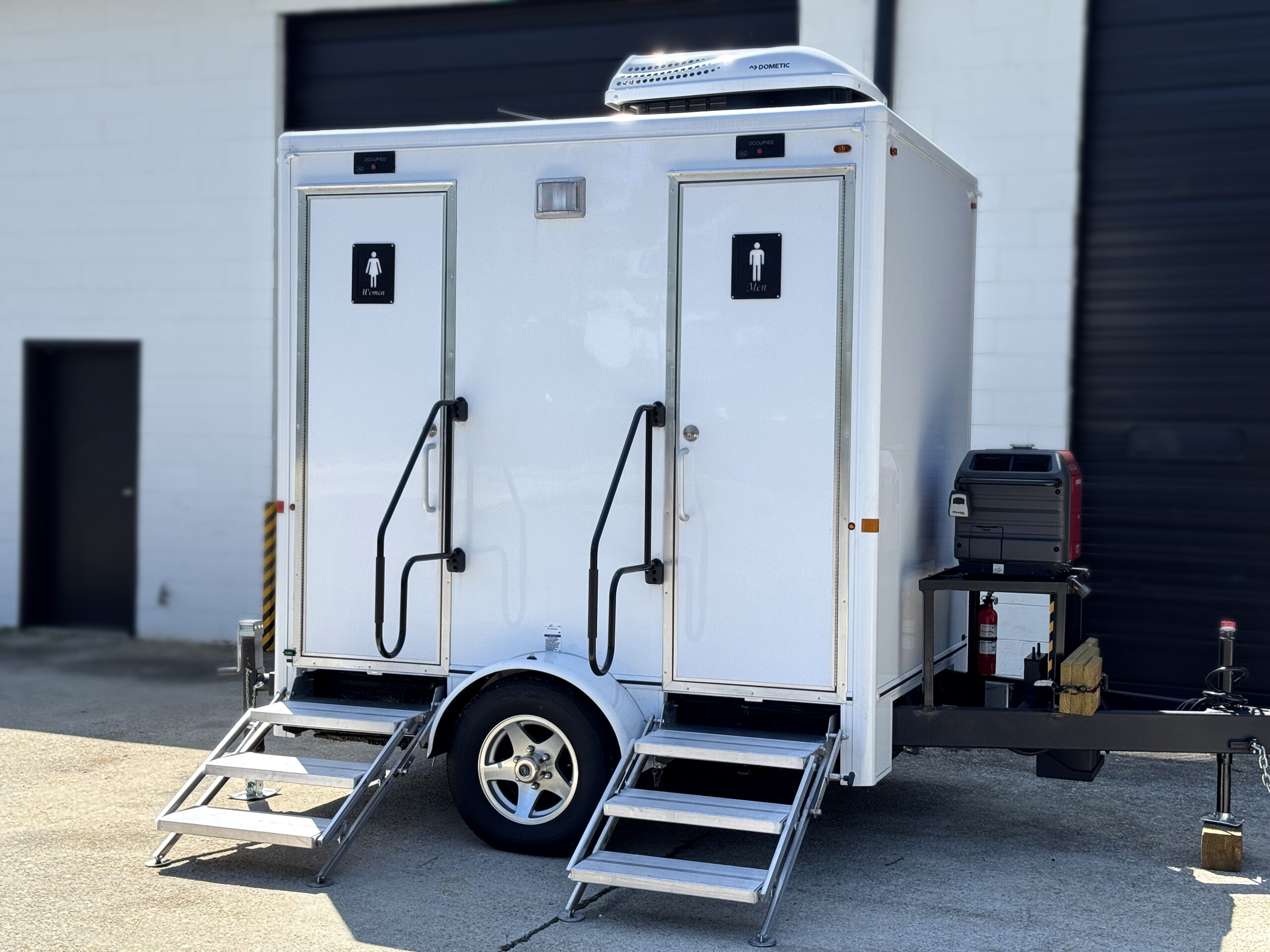Elevate your event with our 2-Stall Luxury Restroom Trailers—eco-friendly, elegant, and fully self-contained. Book now for a clean, comfortable, and sustainable experience!