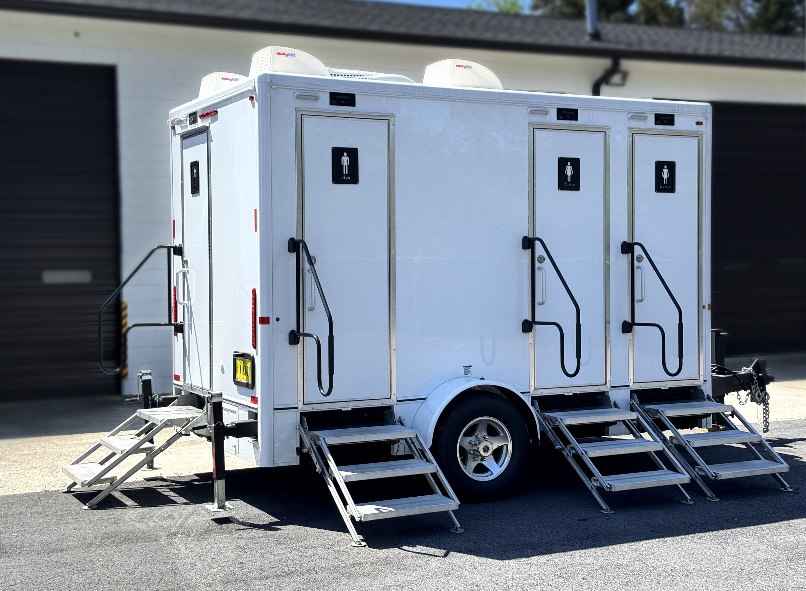 Elevate your event with our 4-Stall Luxury Restroom Trailers—eco-friendly, elegant, and fully self-contained. Book now for a clean, comfortable, and sustainable experience!